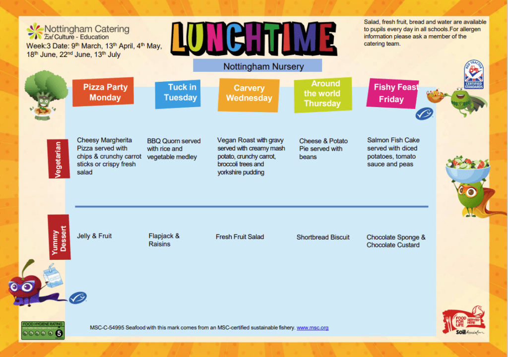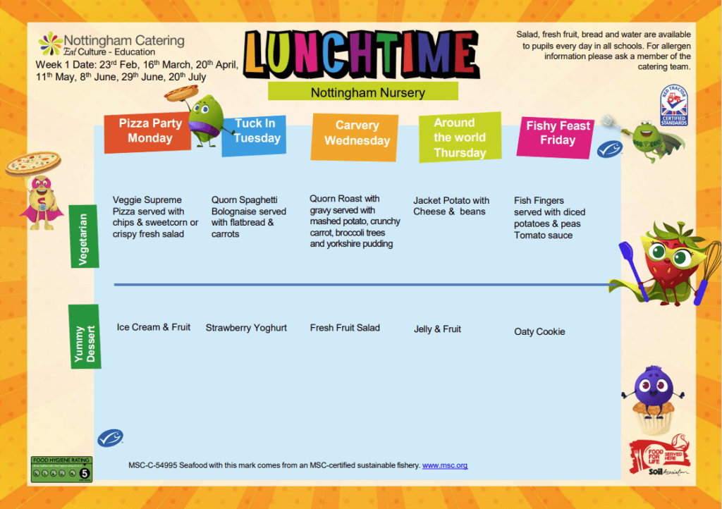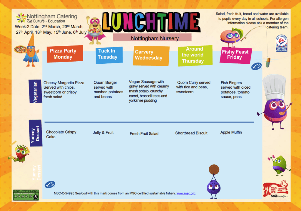 School meals are cooked on-site and are freshly prepared each day. From the 4rd of September 2025 the cost of a school meal will be £2.65 per meal per day. This will be £13.25 per week.